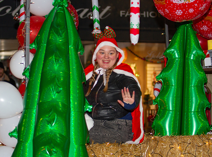 Spectators came to admire the elaborately decorated holiday floats and to catch a glimpse of the jolly old man himself, accompanied by Mrs. Claus.